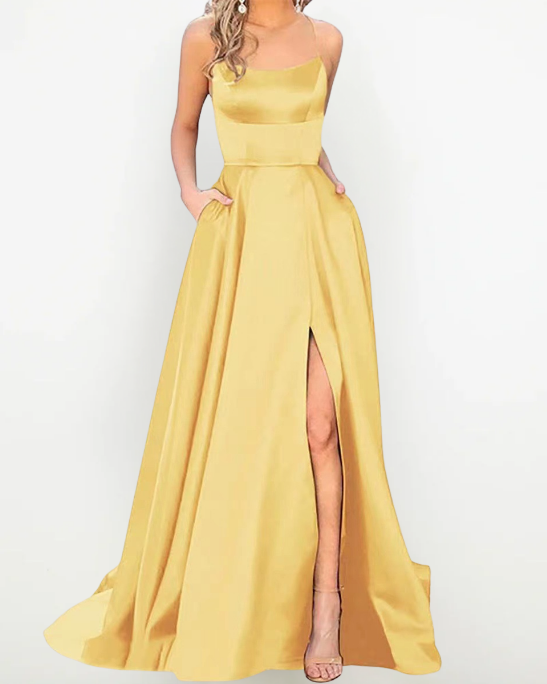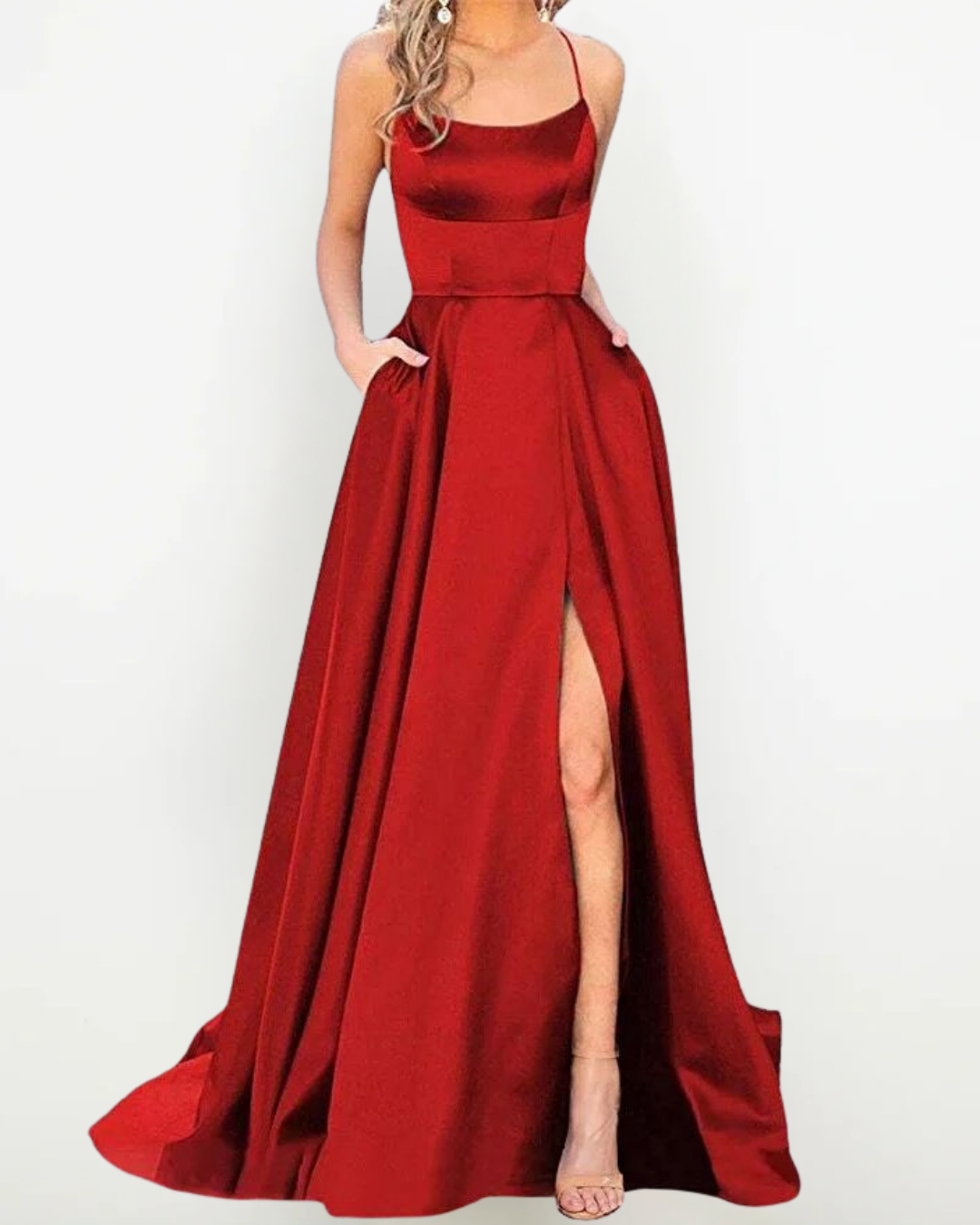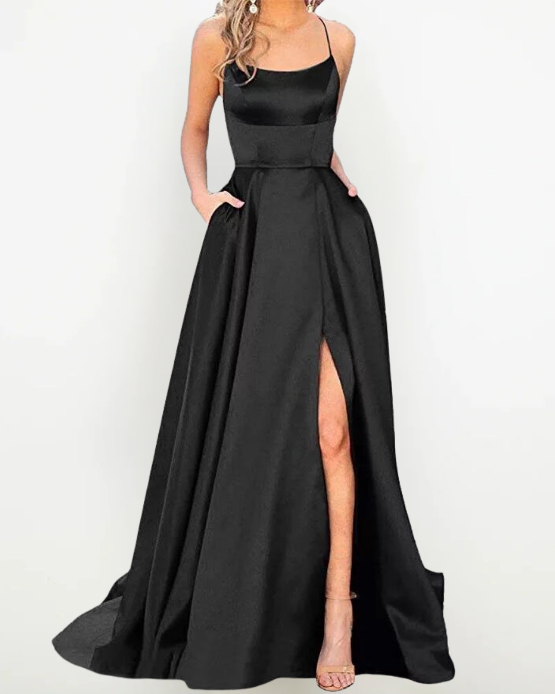 Abito Lungo in Raso Elegante con Spacco – Perfetto per Cerimonie