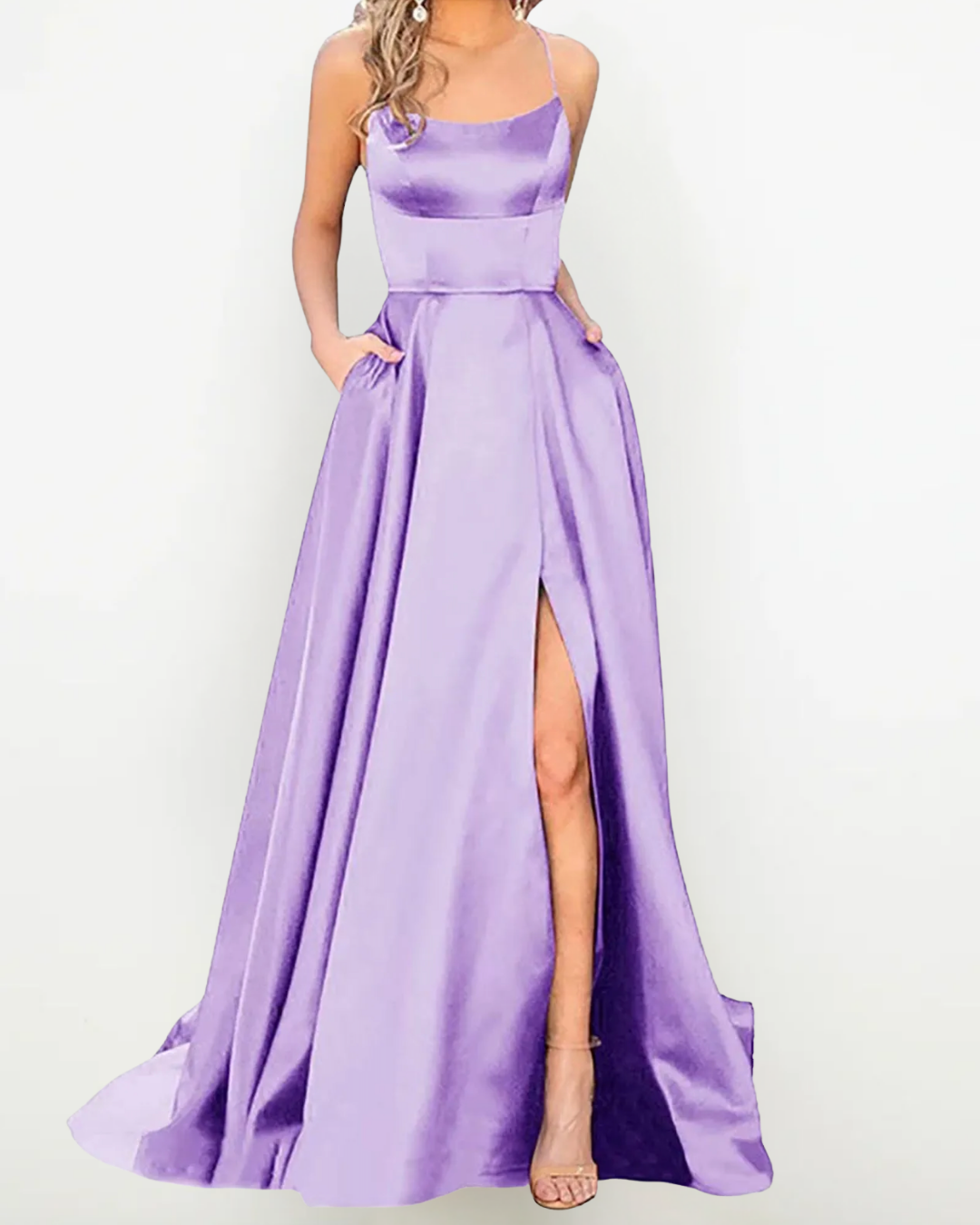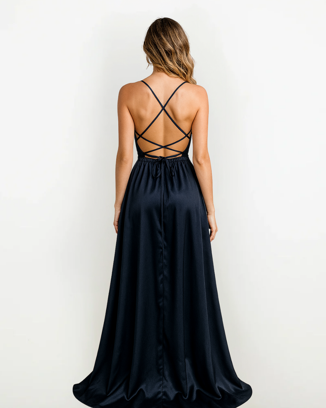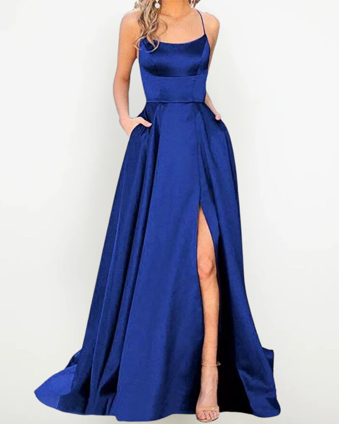 Abito Lungo in Raso Elegante con Spacco – Perfetto per Cerimonie