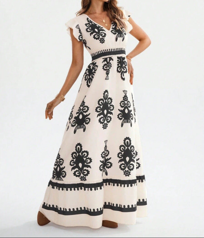 Sofia – Abito Lungo Donna con Stampa Elegante e Vita Elasticizzata